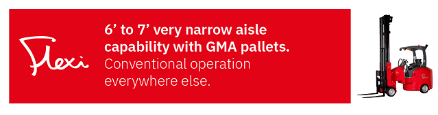 -Functioning as very narrow aisle forklifts within aisles, Flexi layouts seamlessly transition to operate like conventional forklifts outside of the aisles, providing versatile and efficient performance.