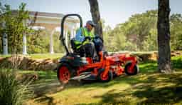 With its class leading speed of 10 mph, the Kubota Z412KW-48 keeps you moving with efficiency and ease as you clean up around the yard. Rated at 22 horsepower, thanks to its Kawasaki engine, and making use of a Hydro-Gear Commercial ZT3600 transmission, the Z412KW-48 makes yard maintenance and maneuvering around bushes, trees and beautification areas a breeze. The steel-welded mower deck is five-inches deep and 48-inches wide, perfectly suited for your needs. The Z412KW-48 gives you the results you’ll see and excitement you can’t deny. Class-leading speed*